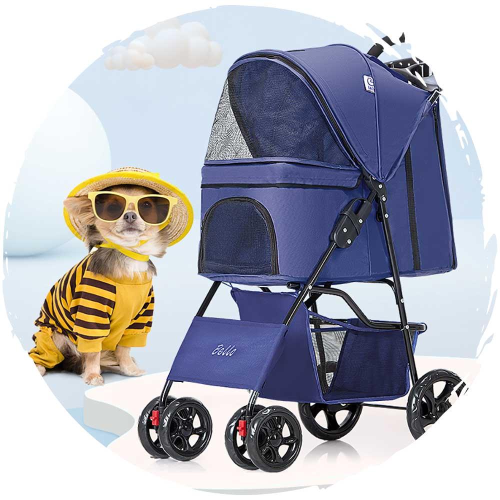 精緻便攜寵物車,撳一個掣就一秒可以摺疊,輕便小巧、仲有安全煞車系統,令狗狗出街更安全,舒適穩固。